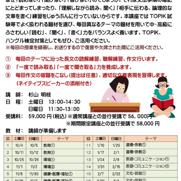 【ZOOM】やさしい韓国語で読む・聴く・音読 世界の名作文学 募集開始