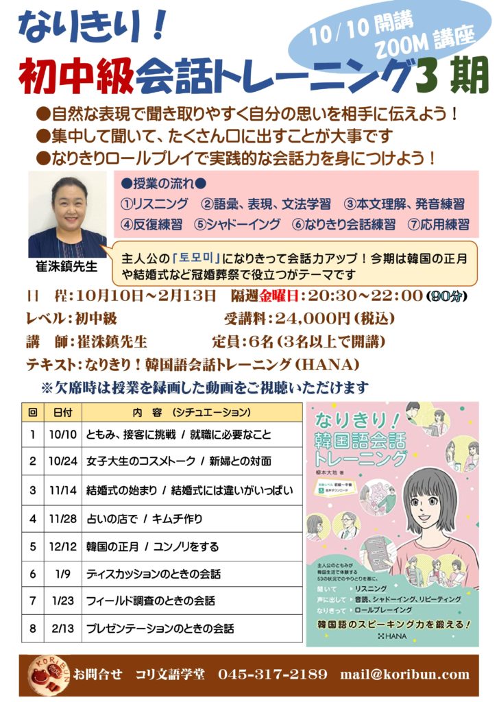 【ZOOM】なりきり初中級会話講座 募集開始