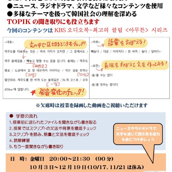 【ZOOM】韓国語初級ドリル講座 募集開始