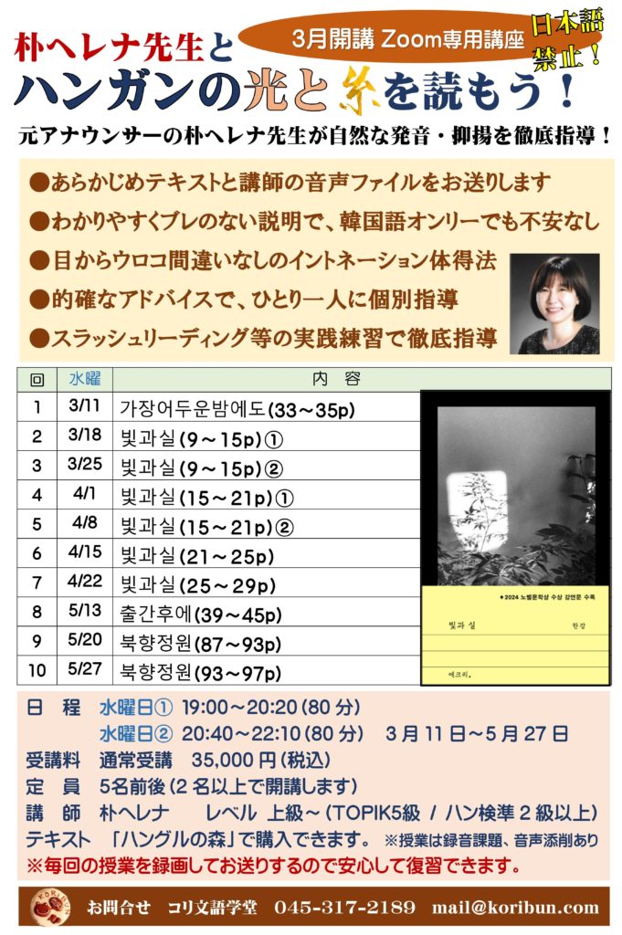 朴ヘレナ先生とハンガンの光と糸を読もう講座 募集開始