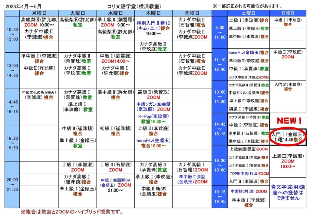 オンライン(zoom)対面(横浜校)対面(新大久保校)